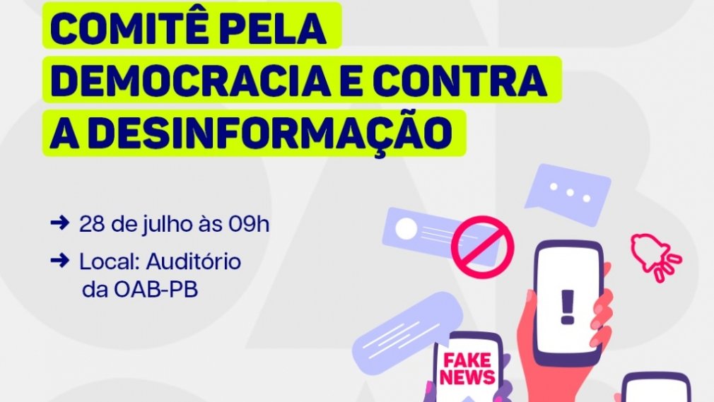 A Ordem dos Advogados do Brasil, Seccional Paraíba (OAB-PB), em parceria com a Associação Paraibana de Imprensa (API) e diversas entidades de cunho social, lançará, nesta quinta-feira (28), o Comitê pela Democracia e Contra a Desinformação, durante evento no auditório da Instituição…