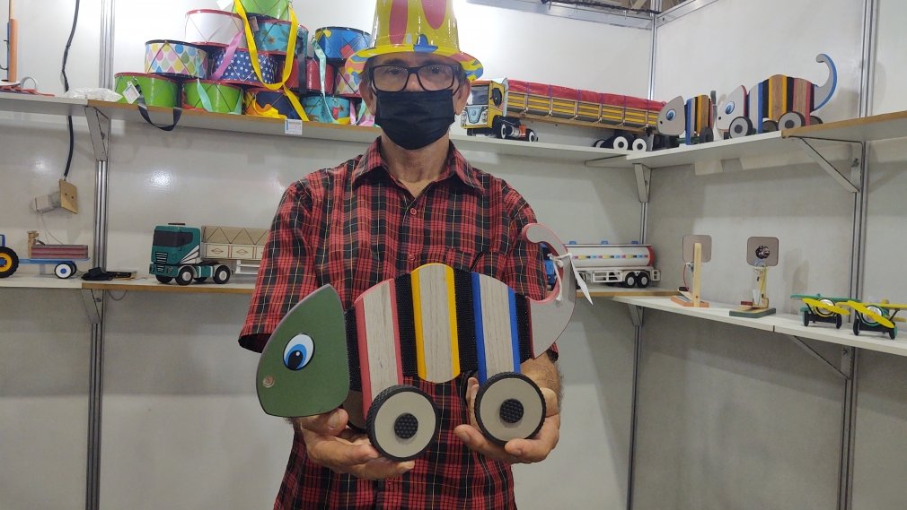 Uma mistura de madeira, borrachas, cores e criatividade. Essa é a definição perfeita para os brinquedos artesanais expostos no estande Brinquedos Monteiro. São peças que resgatam os tempos em que brincar era também algo lúdico e criativo.