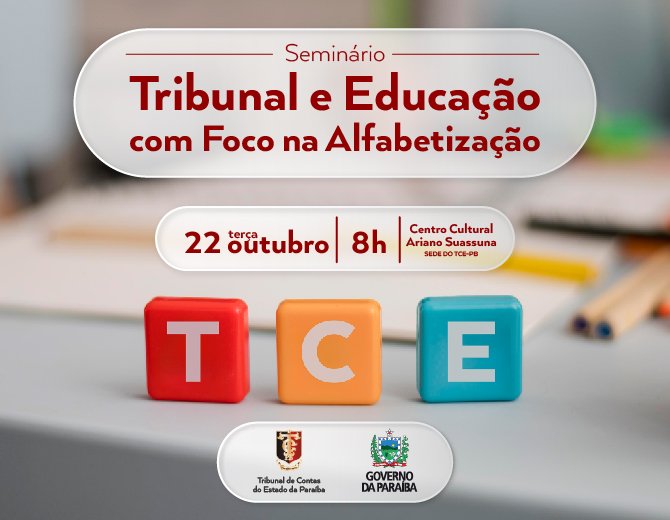 O Tribunal de Contas do Estado da Paraíba (TCE-PB), em parceria com a Secretaria de Educação do Estado, realiza nesta terça-feira (22), o seminário intitulado “Tribunal e Educação com Foco na Alfabetização”. O evento, que acontecerá das 8h às 12h, no Centro…