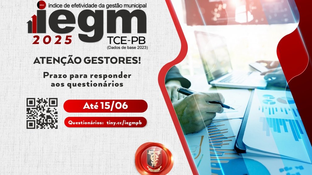 O Tribunal de Contas do Estado da Paraíba (TCE-PB) alerta aos prefeitos paraibanos sobre o encerramento do prazo para o preenchimento do questionário do Índice de Efetividade da Gestão Municipal (IEGM) 2025, referente ao ano-base 2024. As respostas devem ser enviadas até…