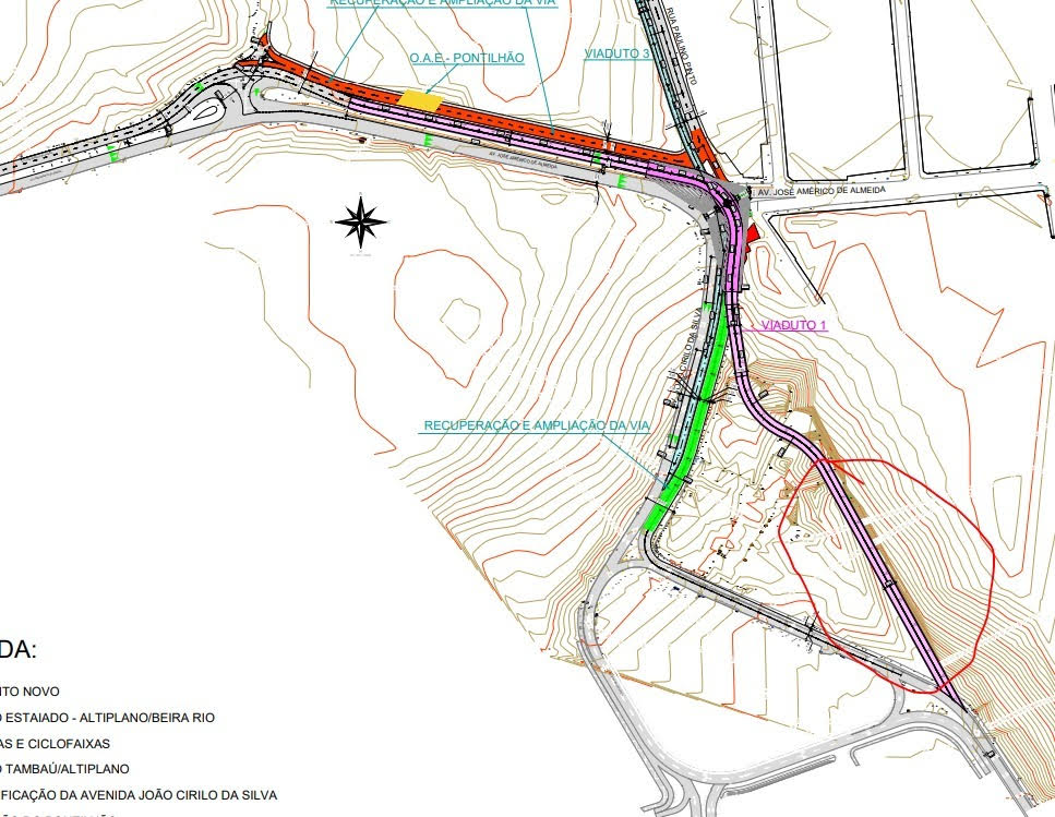 O primeiro conjunto de obras – viaduto 1 (Av. João Cirilo da Silva com Av. Min. José Américo de Almeida) e viaduto 3 (R. Paulino Pinto em direção ao altiplano, na Av. João Cirilo da Silva) foi licitado por meio da Concorrência Presencial nº 11.002/2025, conduzida pela Secretaria de Infraestrutura de João Pessoa, sob o regime de contratação integrada, incluindo a elaboração dos projetos básicos e executivos. Venceu o consórcio Azevedo e Travassos Infraestrutura Ltda.; e KPE Performance em Engenharia S.A; no valor de R$ 128.390.000,00, homologado em 08/01 pelo Secretário de Infraestrutura.