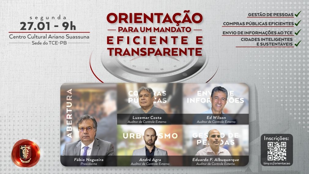 O Tribunal de Contas da Paraíba (TCE-PB) promoverá, na próxima segunda-feira (27), o evento "Orientação para um Mandato Eficiente e Transparente", destinado aos prefeitos que assumirão os cargos nos próximos quatro anos. O encontro acontecerá das 9h às 12h, no Centro Cultural Ariano…